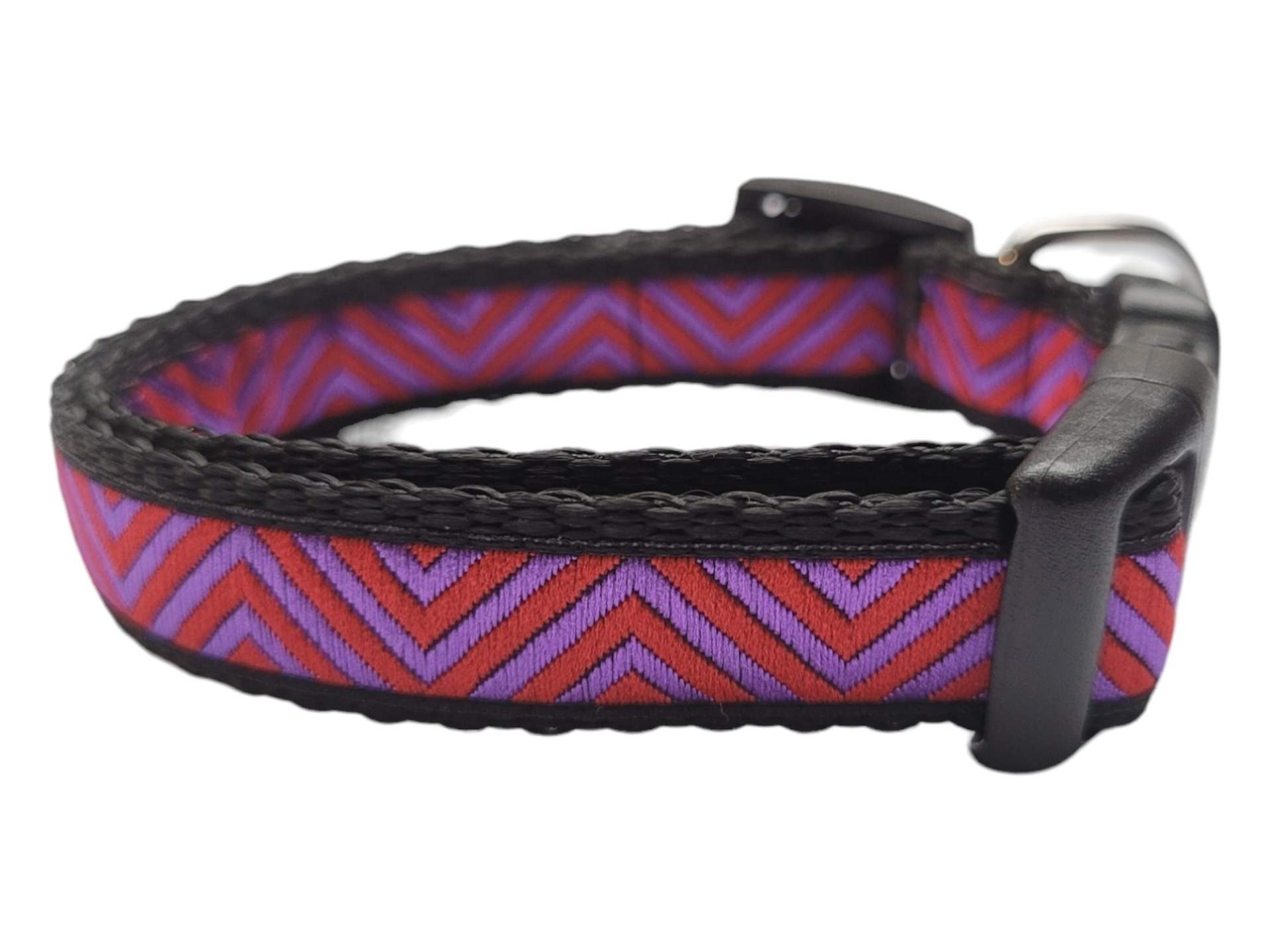De halsbandjes zijn 15mm breed en verstelbaar van circa 22-35cm in maat M. De halsbandjes zijn gemaakt van stevig maar zacht band met een geweven printje wat deze halsband erg duurzaam en slijtvast maakt.