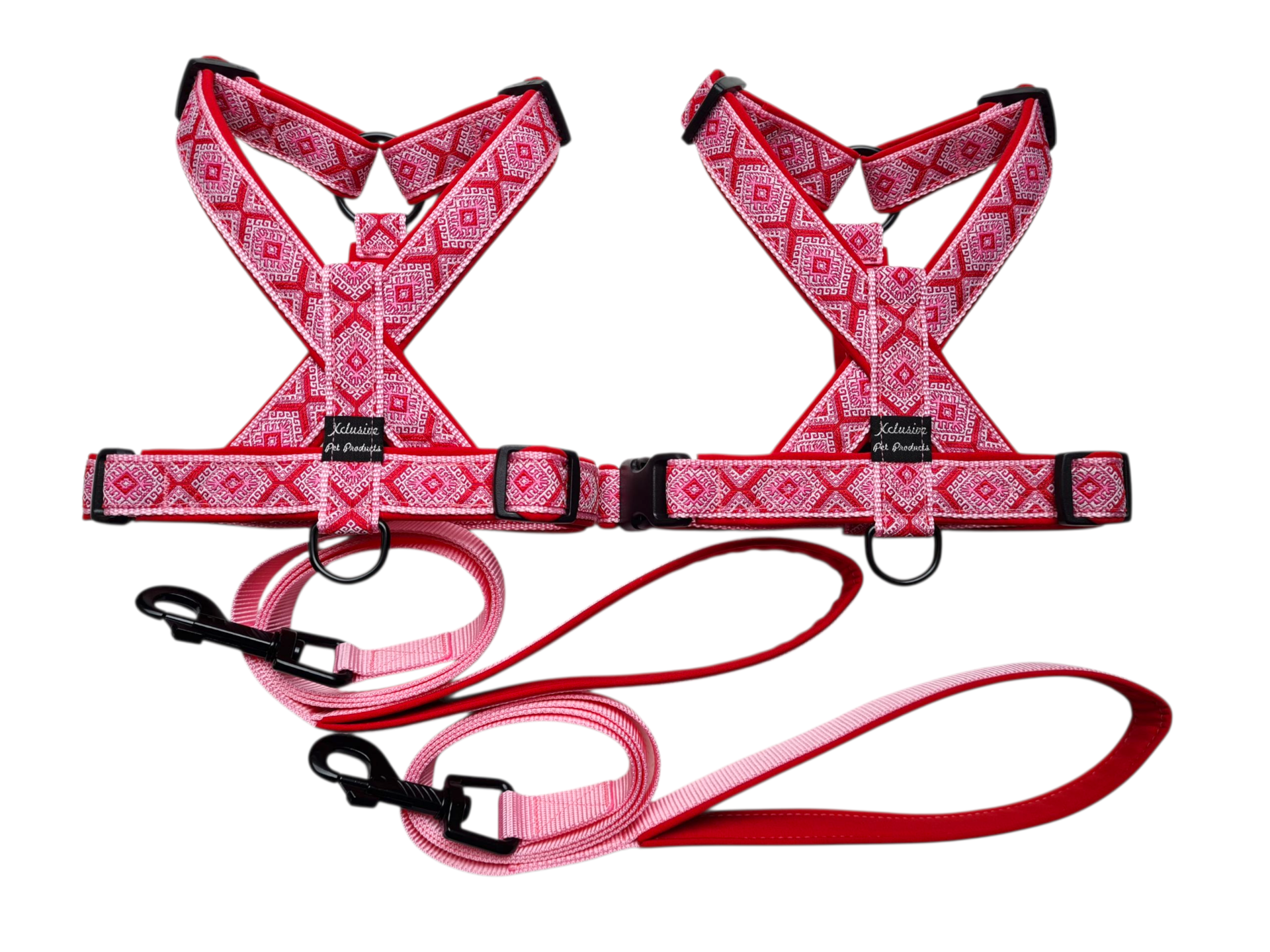 Print voor tuigjes maat s 38 Roze band rode voering met rood gevoerde lijnen Roze band rode voering